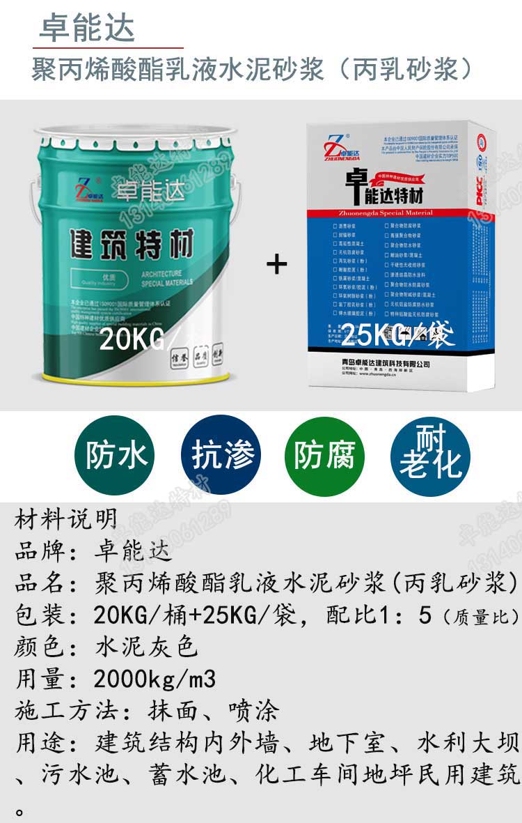 聚丙烯酸酯乳液砂漿又稱丙乳砂漿,是丙烯酸酯共聚乳液改性的聚合物水泥砂漿,丙乳是一種水泥基高分子聚合物的水分散體,加入水泥砂漿后也稱為聚合物水泥砂漿。該砂漿具有優(yōu)異的粘結、抗裂、抗凍、防滲、防腐、抗氯離子滲透、耐老化和耐蝕性能,適用于海洋、水閘、瀑布、港口工程、公路、橋梁、冶金、化工、工業(yè)地坪與民用建筑等鋼結構和鋼筋混凝土結構的防滲、防腐護面和修補工程。